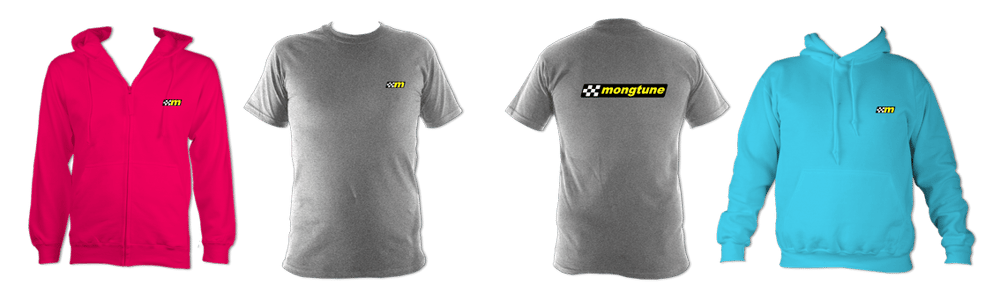 We now have a range of clothing available with screenprinted m logo on the front and large Mongtune logo on the rear